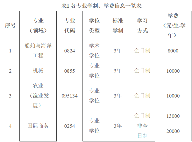 我校各硕士研究生专业学习年限均为3——5年,各专业学位的学制、学费等信息见表1。