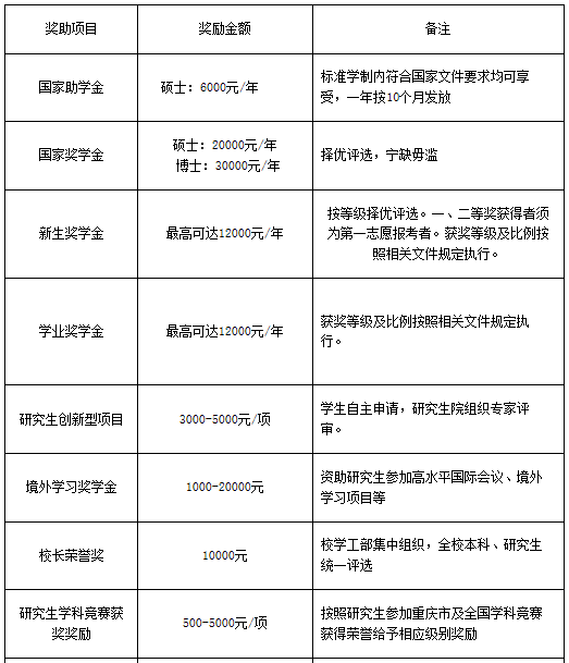 奖助学金参考下表: