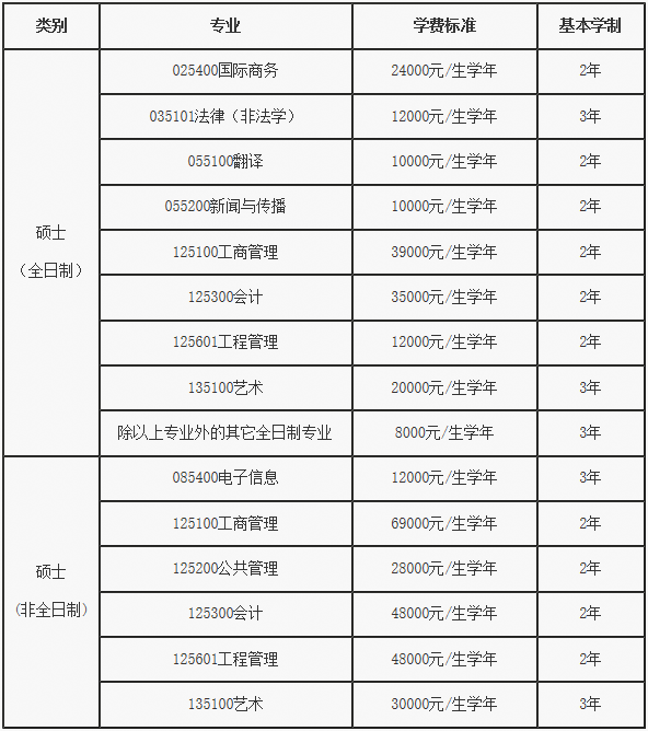 学费标准及基本学制