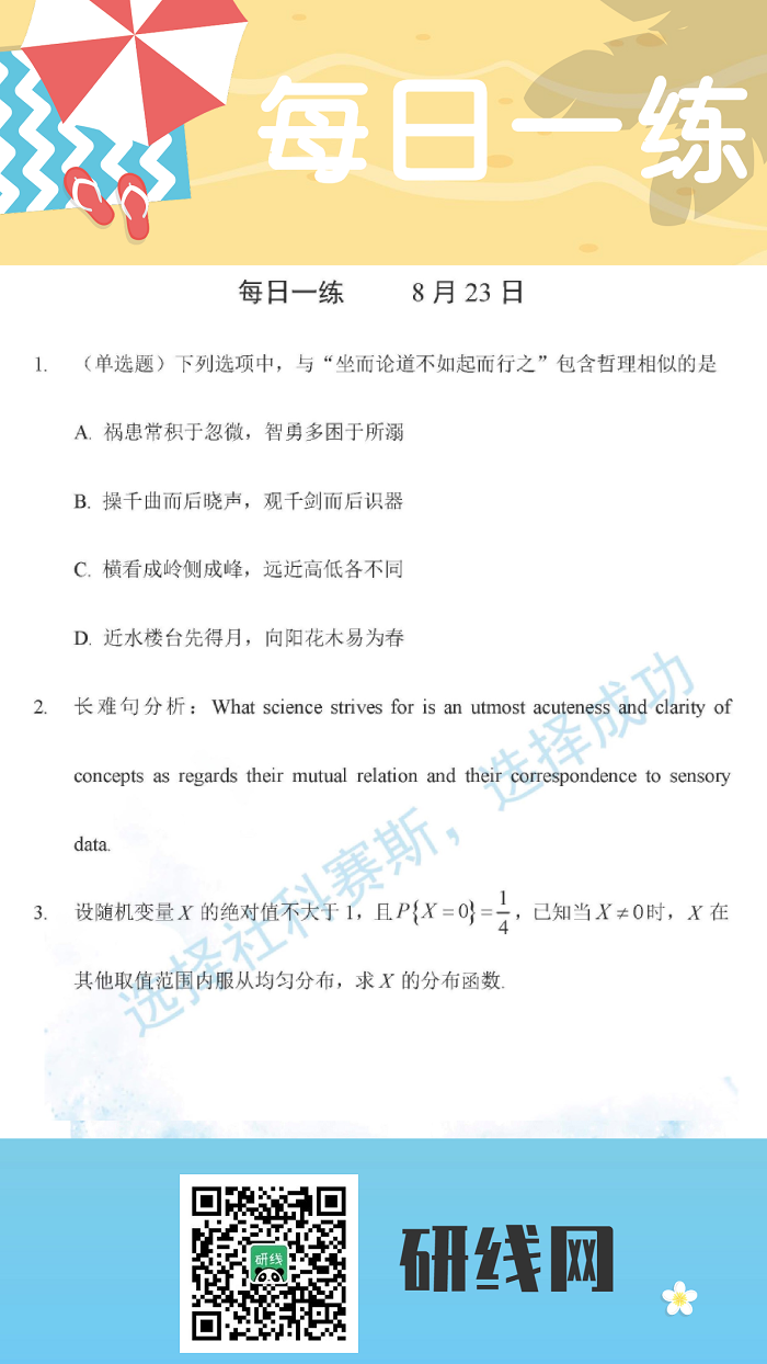 8月23日:2020拼搏在线官网学硕每日一练以及答案