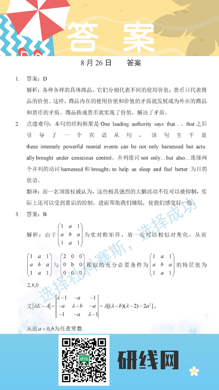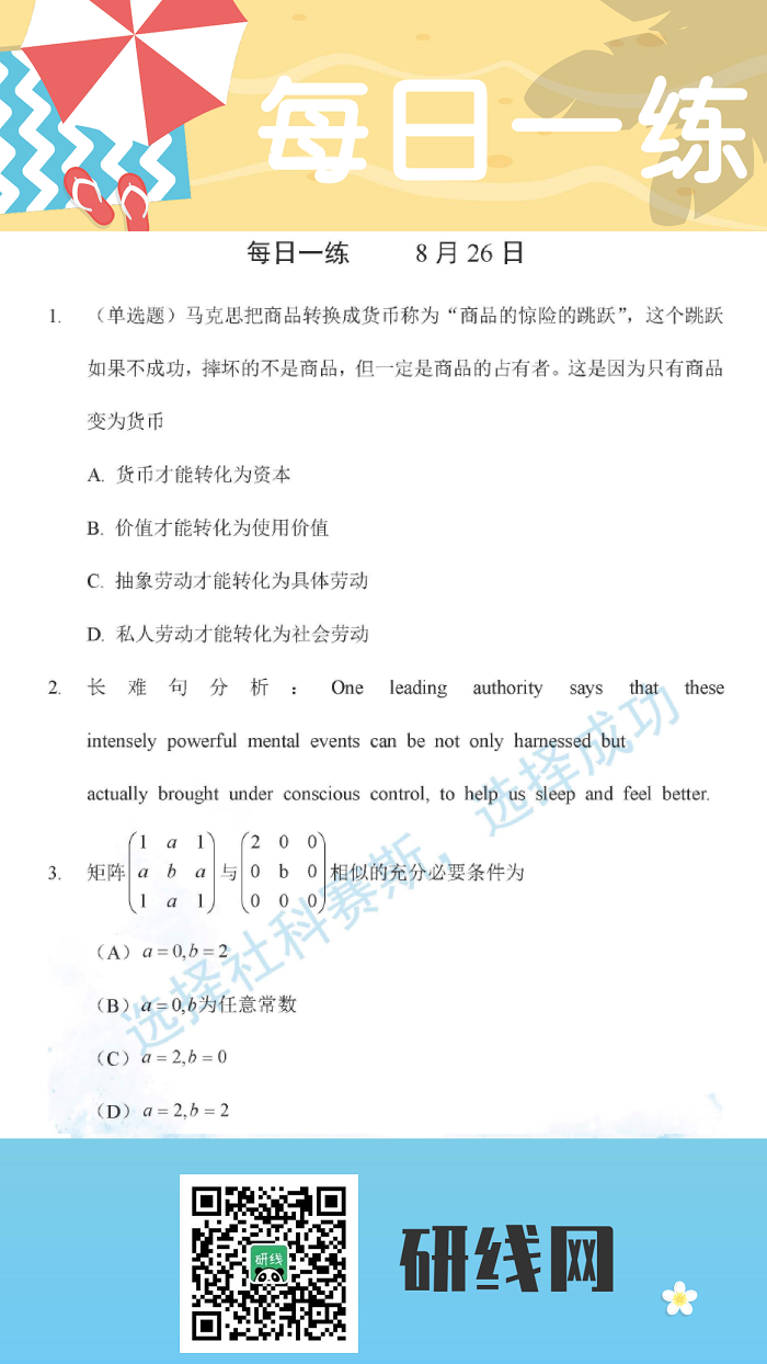 8月26日:2020拼搏在线官网学硕每日一练以及答案
