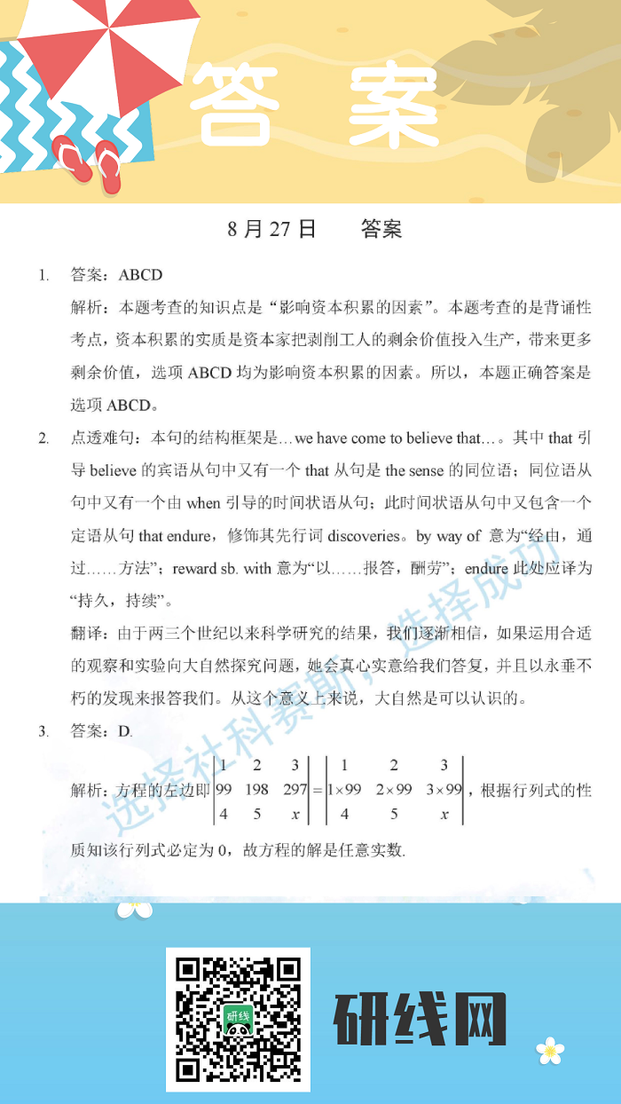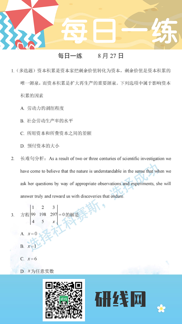 8月27日:2020拼搏在线官网学硕每日一练以及答案
