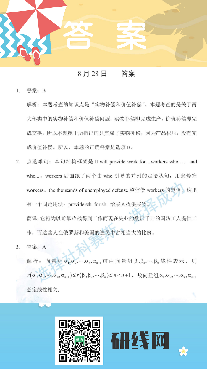 8月28日:2020拼搏在线官网学硕每日一练以及答案