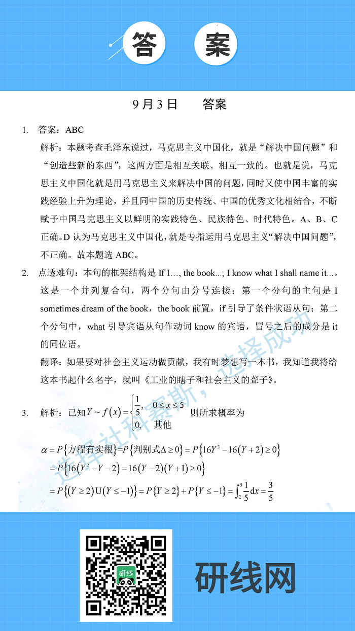 9月3日:2020拼搏在线官网学硕每日一练以及答案