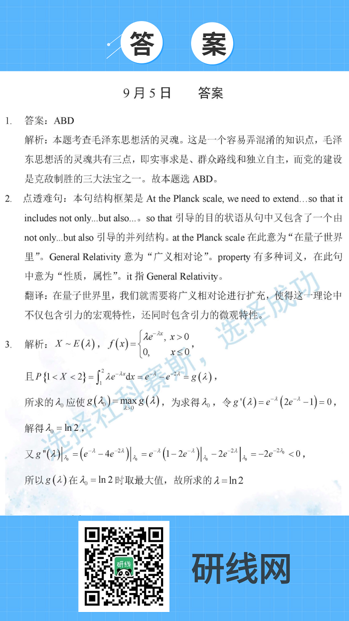9月5日:2020拼搏在线官网学硕每日一练以及答案