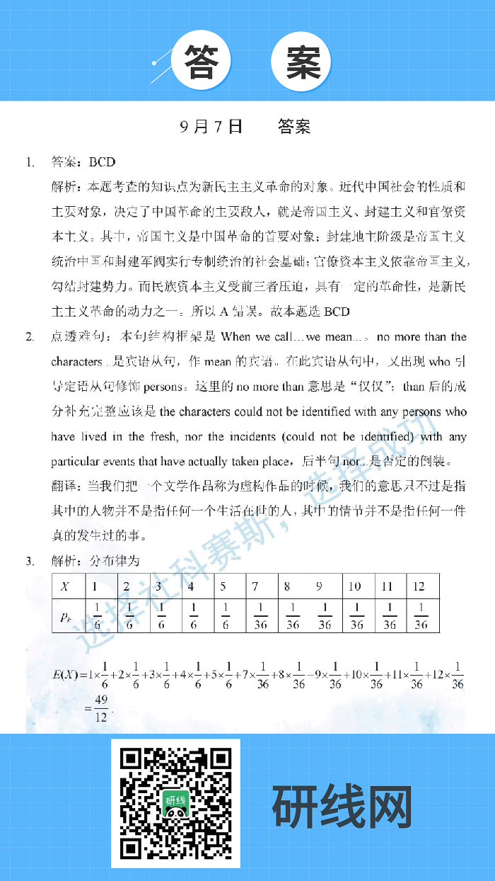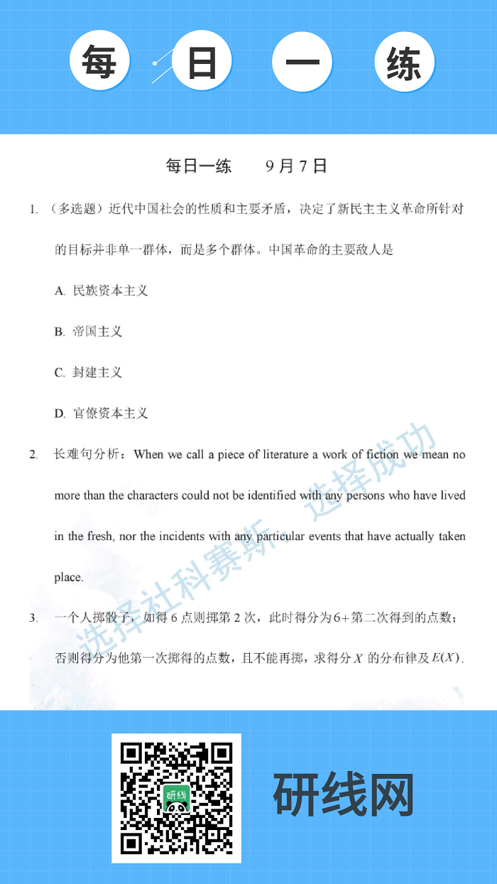 9月7日:2020拼搏在线官网学硕每日一练以及答案