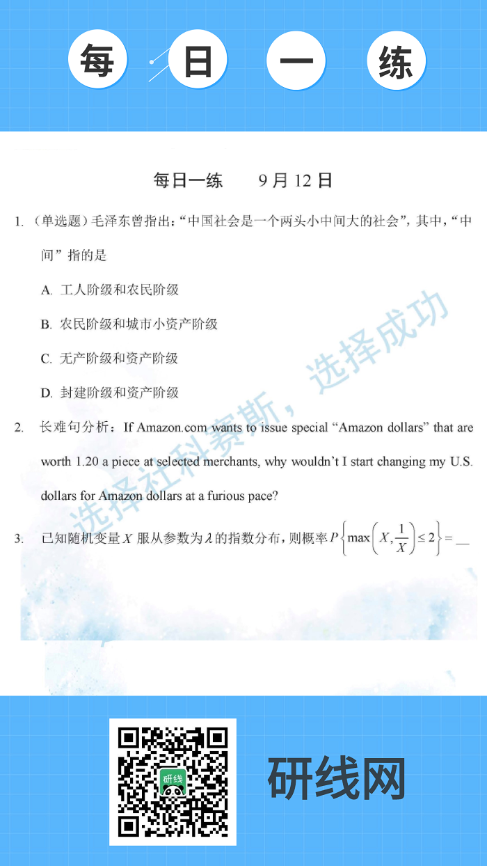 9月12日:2020拼搏在线官网学硕每日一练以及答案