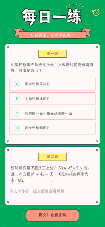 点击进入:研线课堂万题库,每日习题不重复。全面题型任你刷,真题解析随便看。