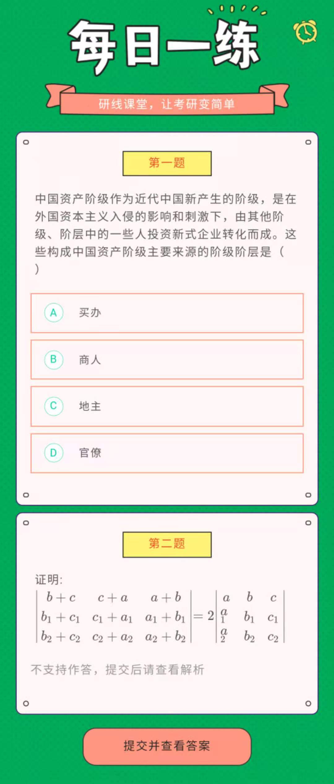 点击进入:研线课堂万题库,每日习题不重复。全面题型任你刷,真题解析随便看。