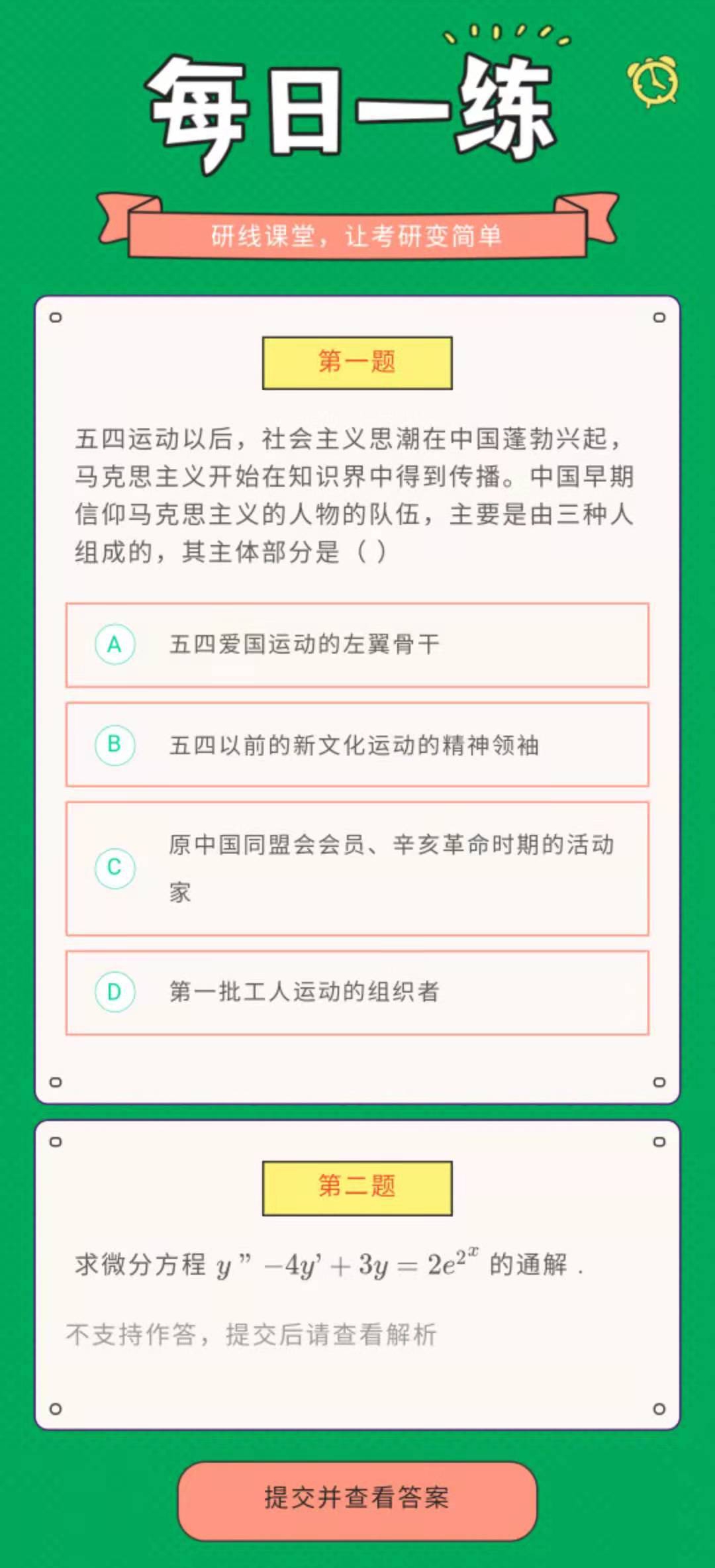 点击进入:研线课堂万题库,每日习题不重复。全面题型任你刷,真题解析随便看。