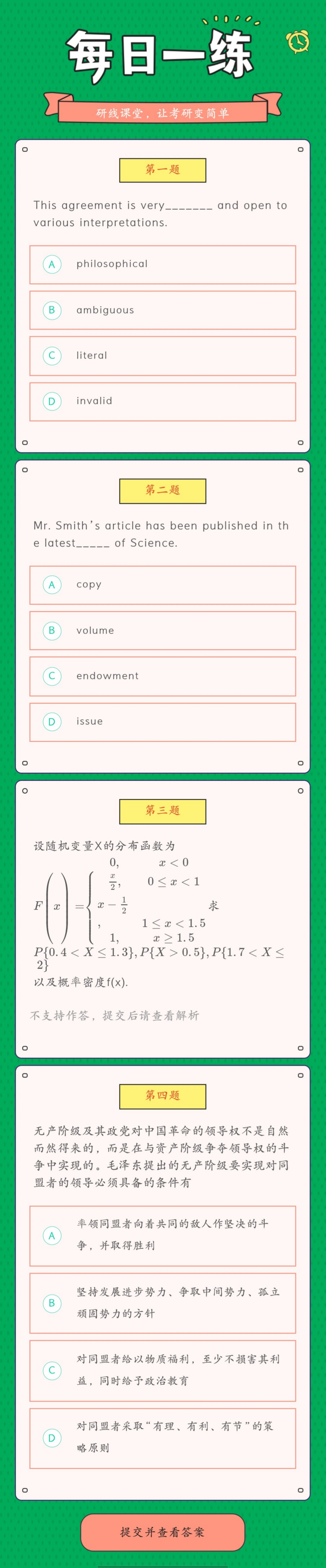 点击进入:研线课堂万题库,每日习题不重复。全面题型任你刷,真题解析随便看。