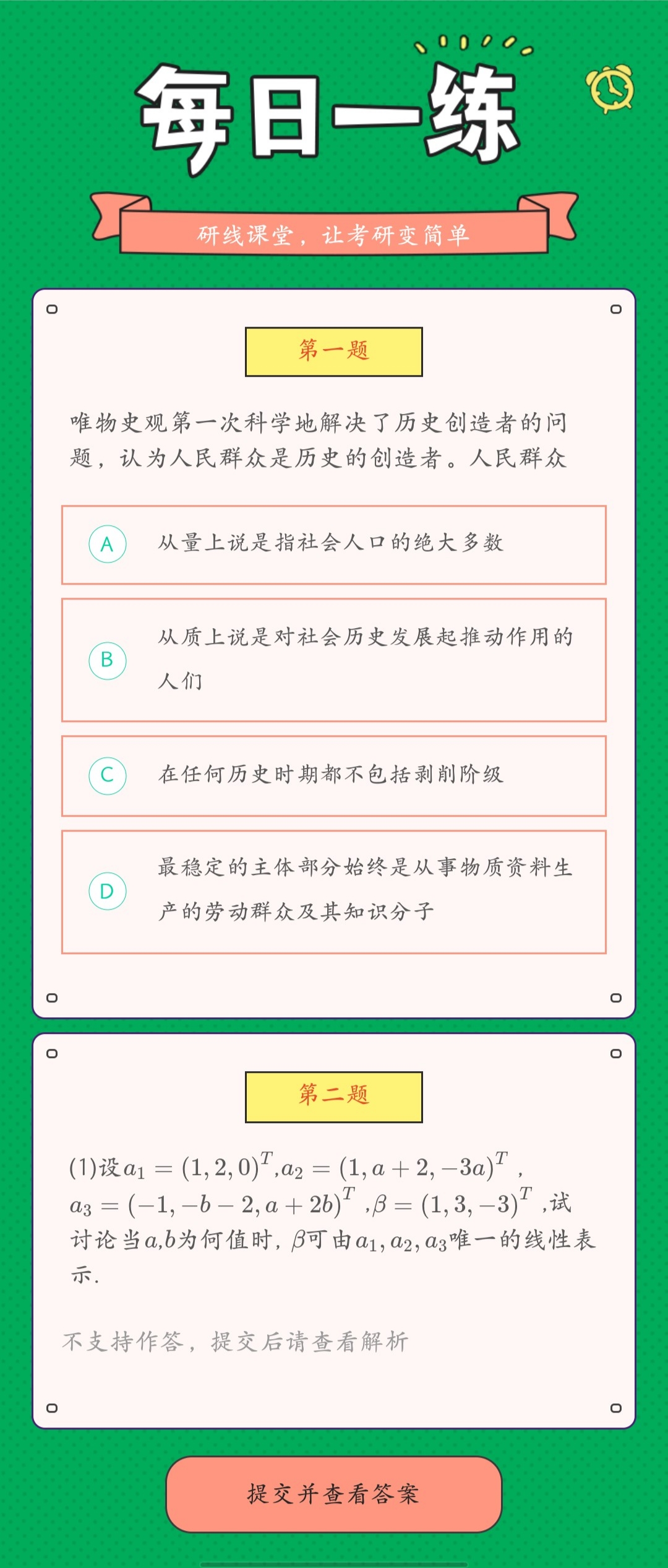 点击进入:研线课堂万题库,每日习题不重复。全面题型任你刷,真题解析随便看。