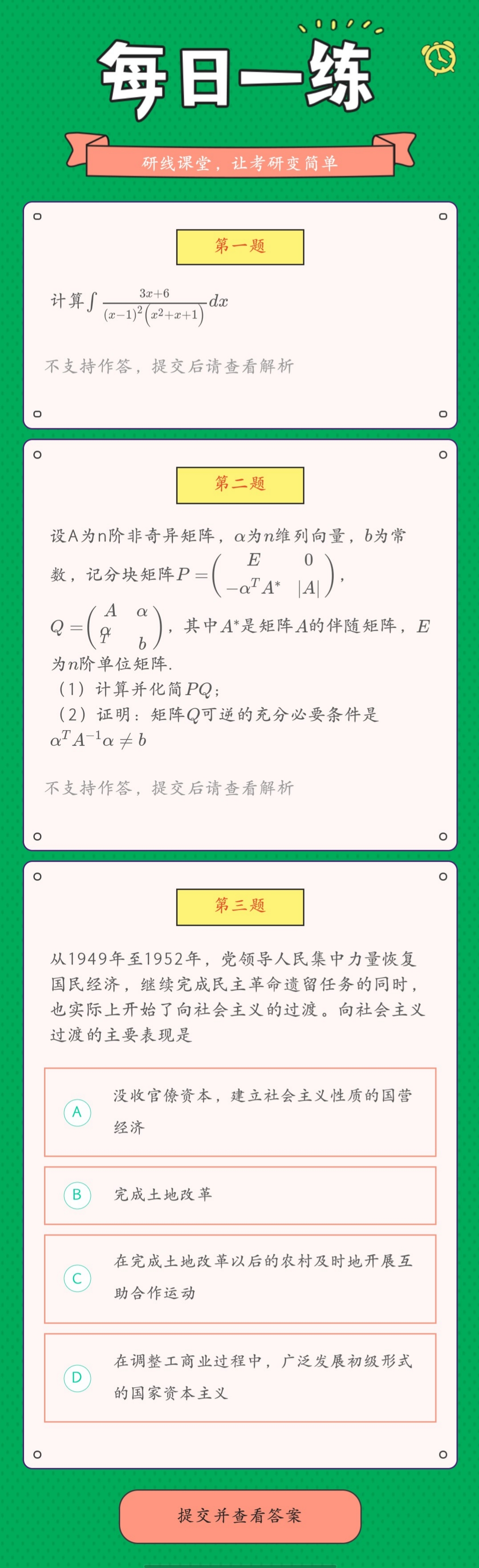 点击进入:研线课堂万题库,每日习题不重复。全面题型任你刷,真题解析随便看。