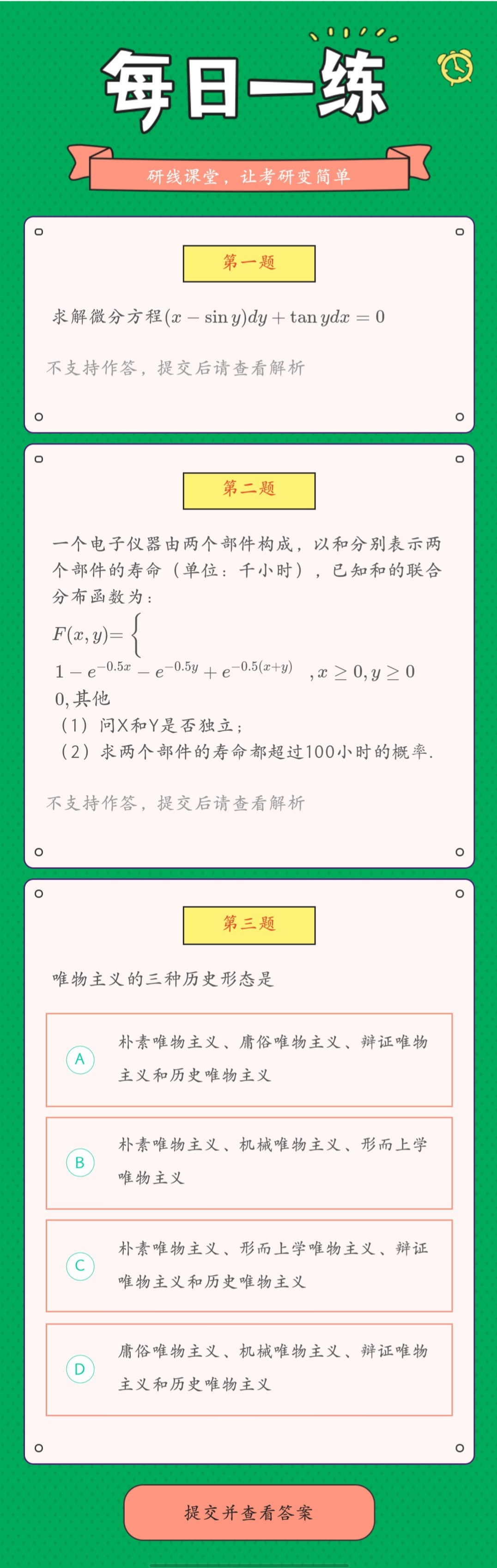 为了更好的复习和巩固已经学过的知识,研线网小编为大家整理出几道题,作为每日的练习,希望能够帮助到同学们哦!