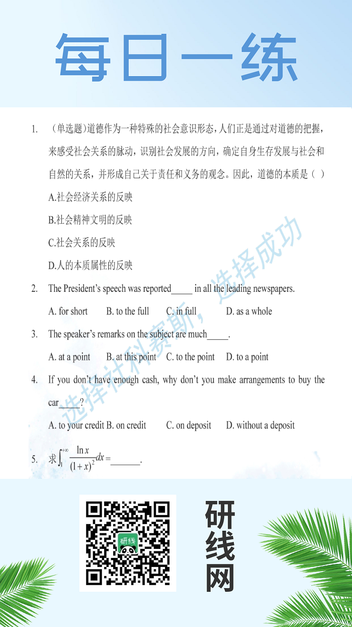 为了更好的复习和巩固已经学过的知识,研线网小编为大家整理出几道题,作为每日的练习,希望能够帮助到同学们哦!