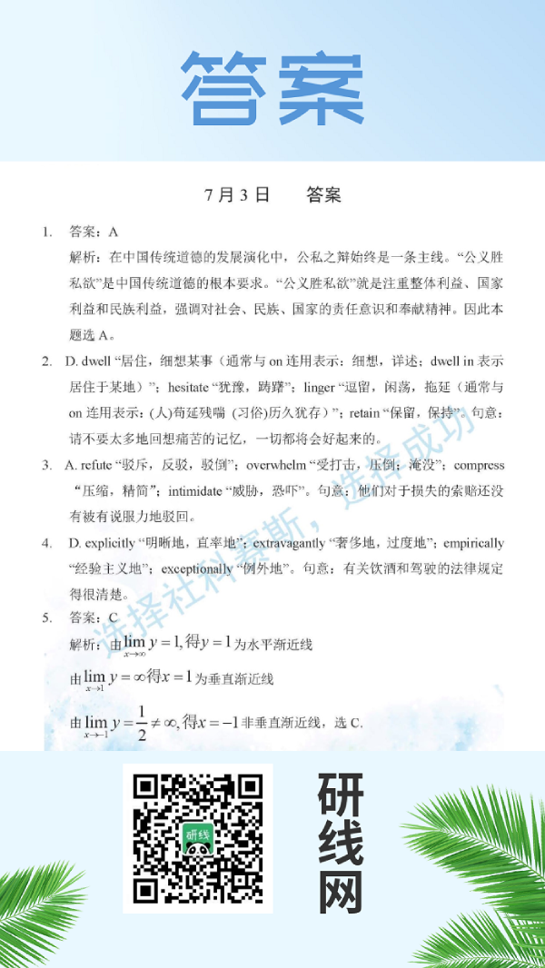 7月3日:2020拼搏在线官网学硕每日一练以及答案
