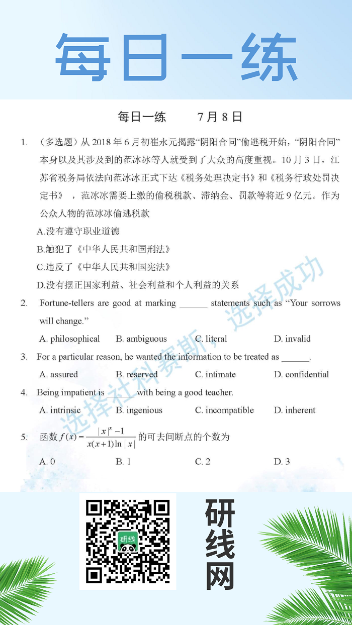7月8日:2020拼搏在线官网学硕每日一练以及答案