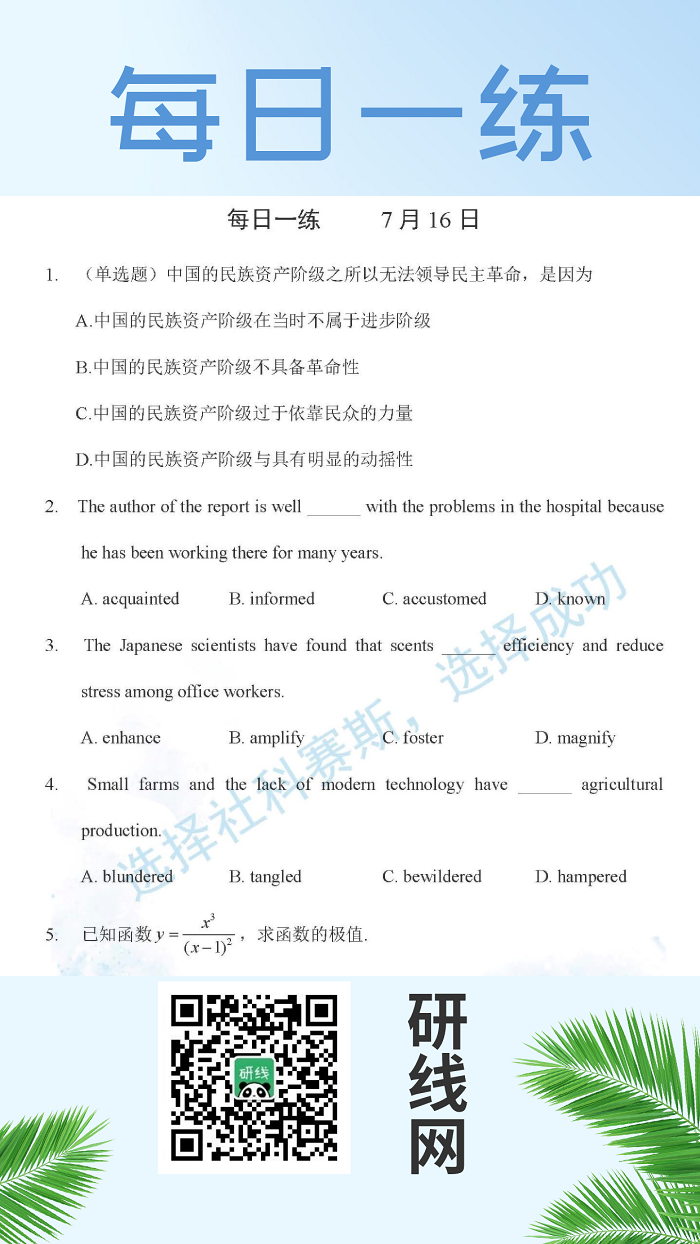 7月16日:2020拼搏在线官网学硕每日一练以及答案