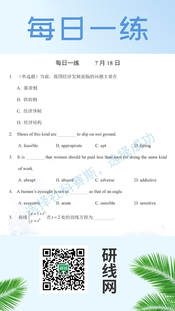 7月18日:2020拼搏在线官网学硕每日一练以及答案
