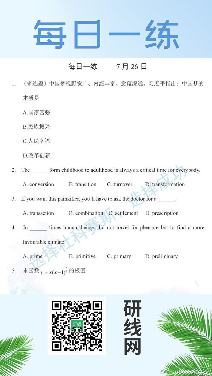 7月26日:2020拼搏在线官网学硕每日一练以及答案