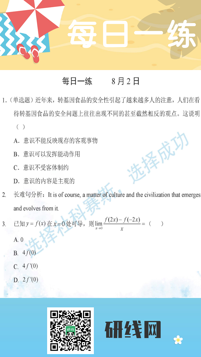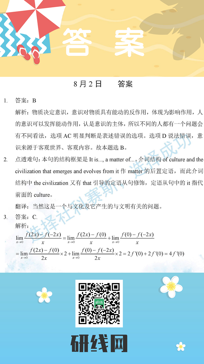 8月2日:2020拼搏在线官网学硕每日一练以及答案