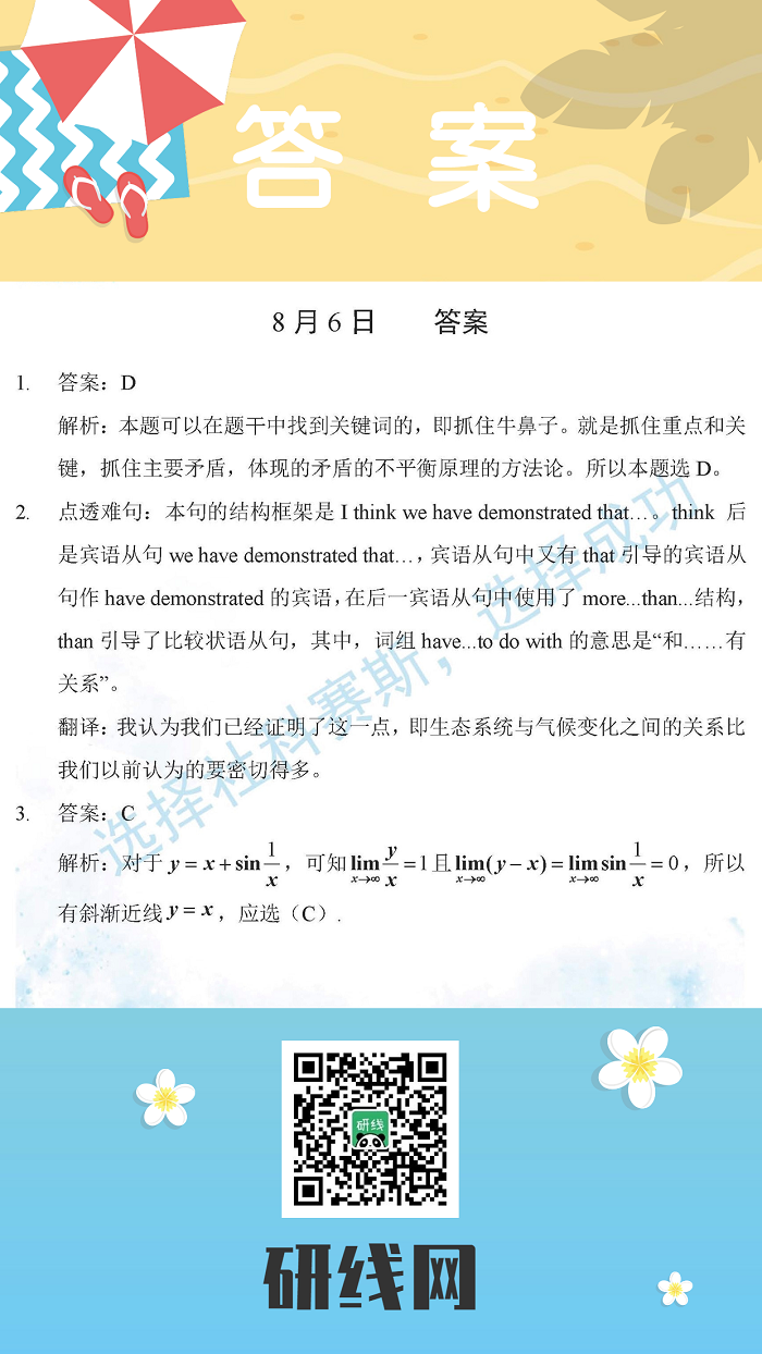 8月6日:2020拼搏在线官网学硕每日一练以及答案