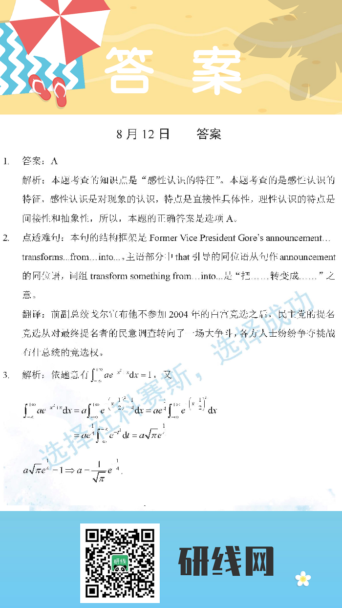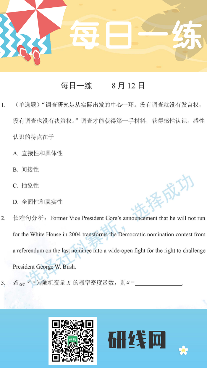 8月12日:2020拼搏在线官网学硕每日一练以及答案