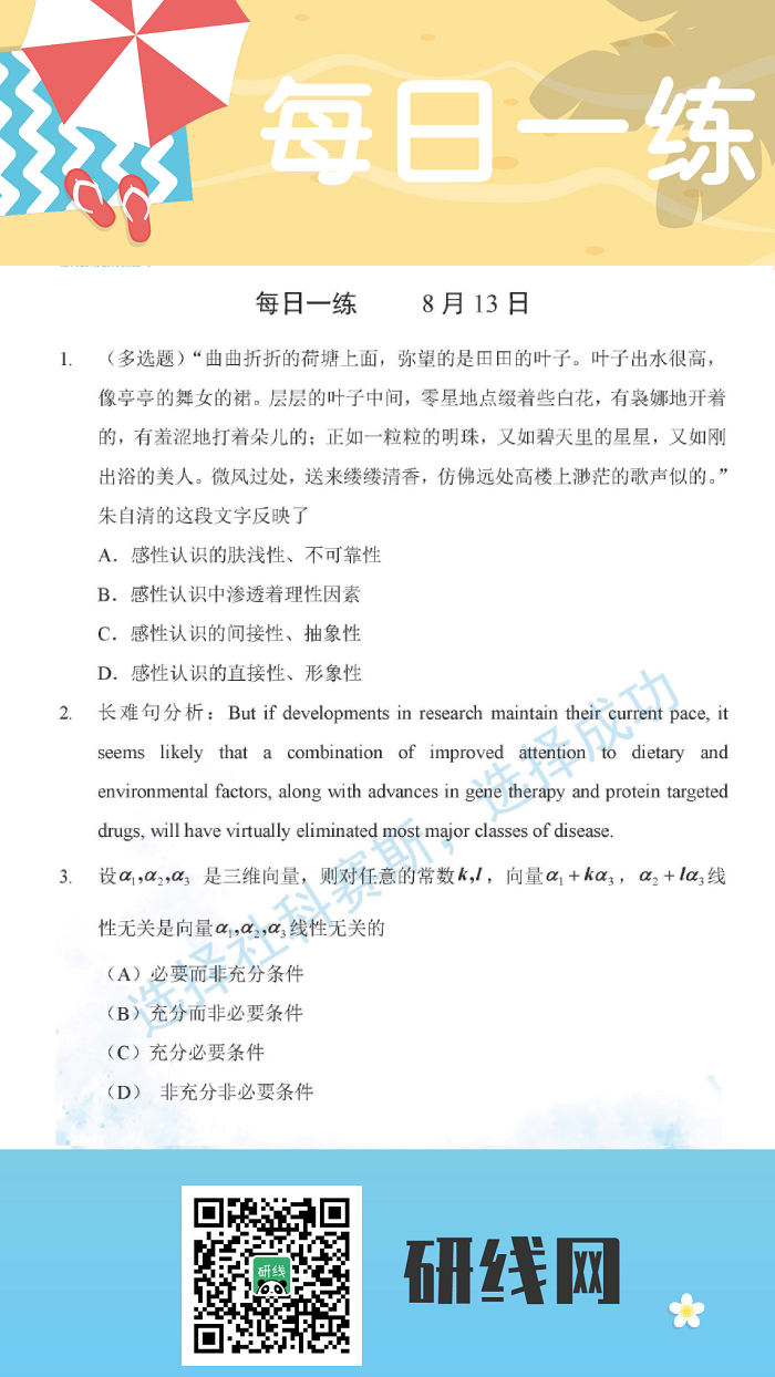 为了更好的复习和巩固已经学过的知识,研线网小编为大家整理出几道题,作为每日的练习,希望能够帮助到同学们哦!