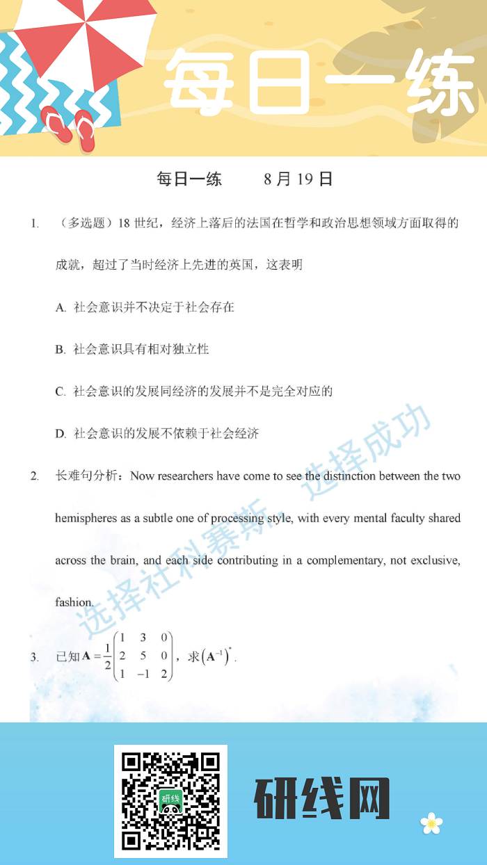 8月19日:2020拼搏在线官网学硕每日一练以及答案