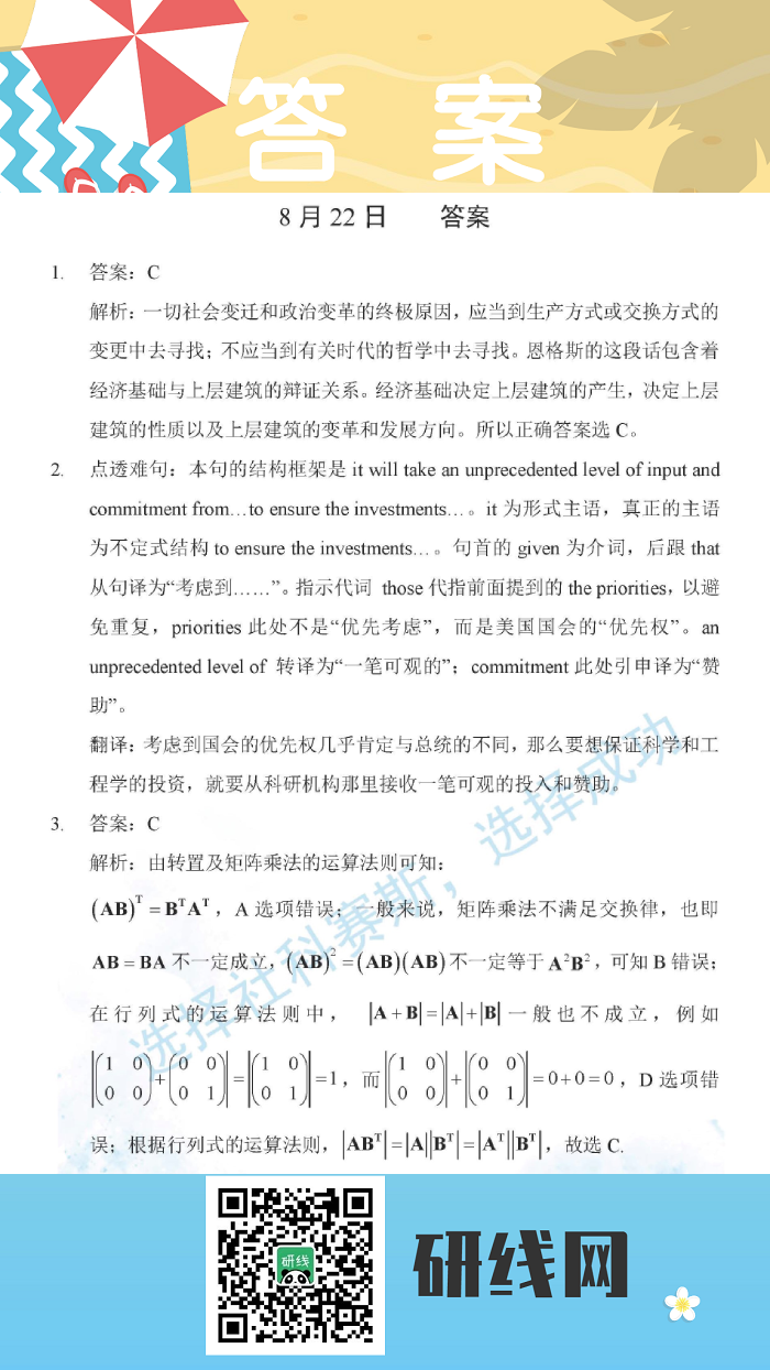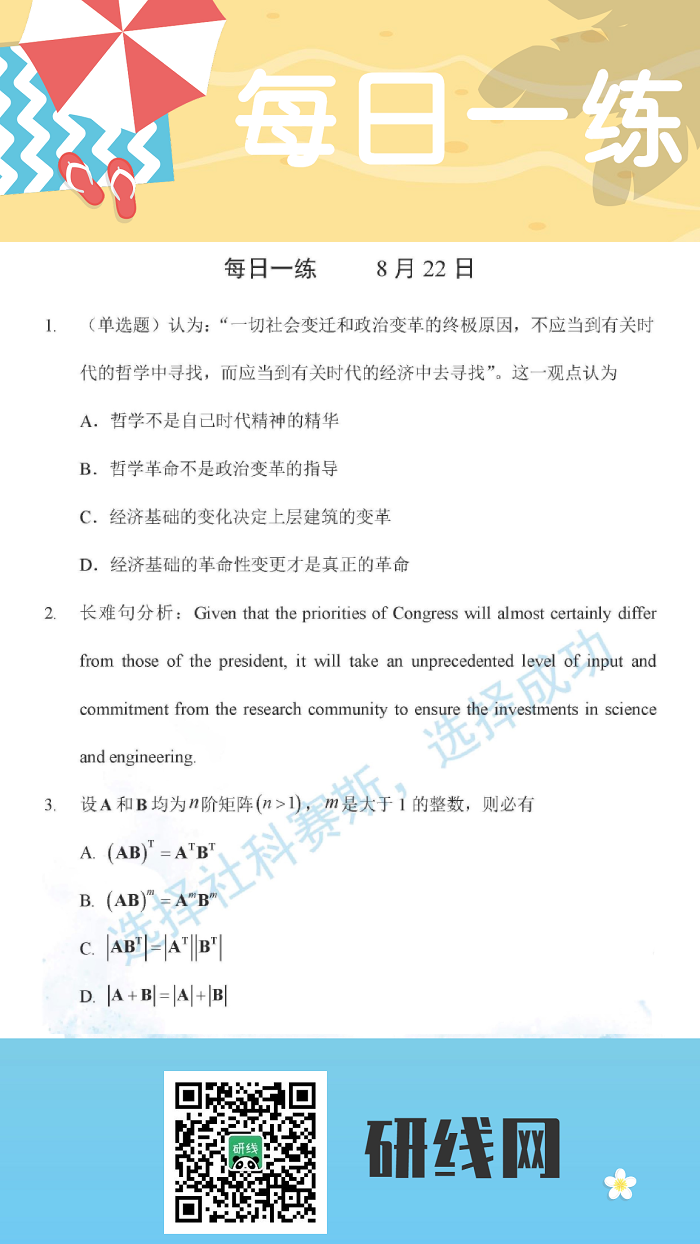 8月22日:2020拼搏在线官网学硕每日一练以及答案