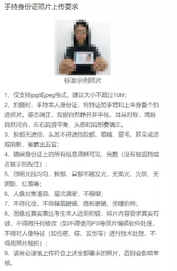 3、本人手持身份证照片,照片要求见下图: