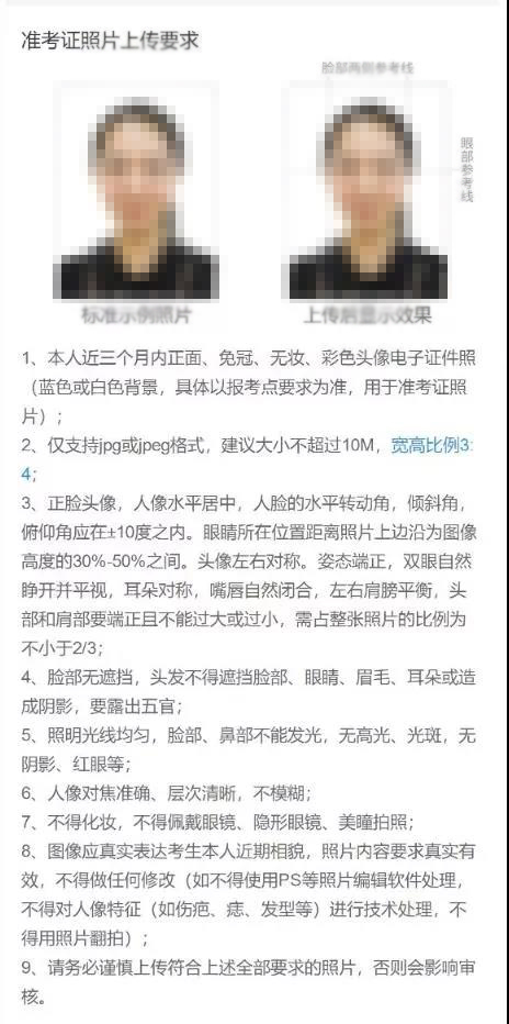 1、本人近三月内正面、免冠、无妆、彩色电子证件照,照片要求见下图: