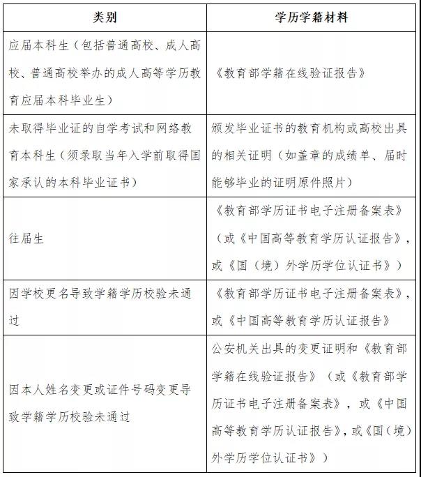 4、学历学籍材料(限网上报名学历学籍审核未通过考生)