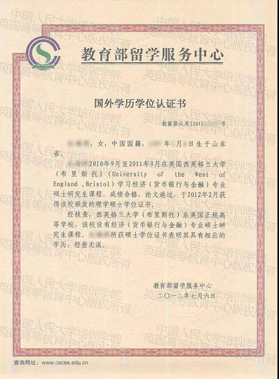 (3)教育部留学服务中心出具的学历学位认证报告办理办法及样例: