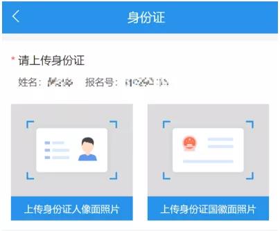 ● 考生本人二代(或者三代)居民身份证原件人像面、国徽面图片。分两张上传,请确保身份证边框完整,字迹清晰,亮度均匀。要求为jpg格式。