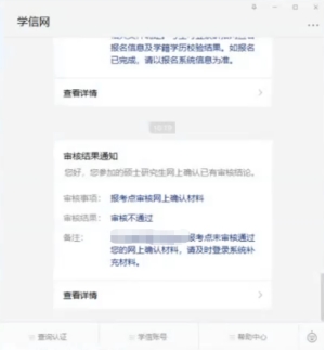 (四)在网上确认期间,请考生随时关注研究生招生信息网站内消息,并及时登陆研招网查看提示消息和具体审核提示。