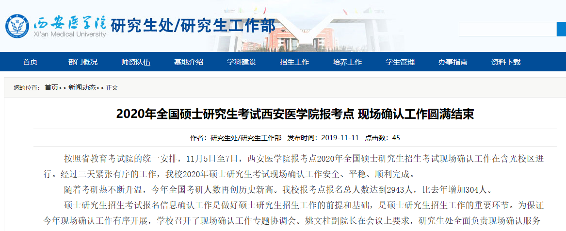 现场确认工作结束后,我校将进入2020年硕士研究生招生考试的考务筹备阶段。