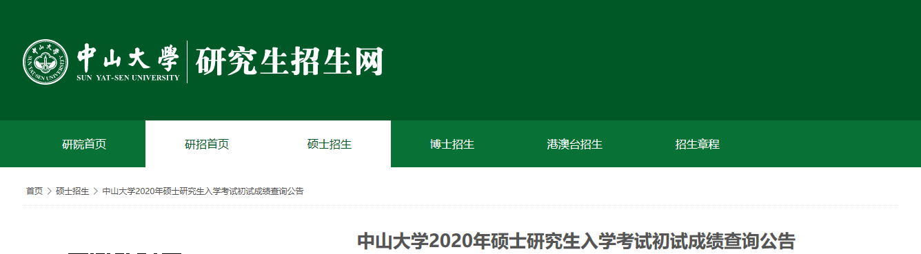 中山拼搏(中国)2020年硕士研究生入学考试初试成绩查询公告
