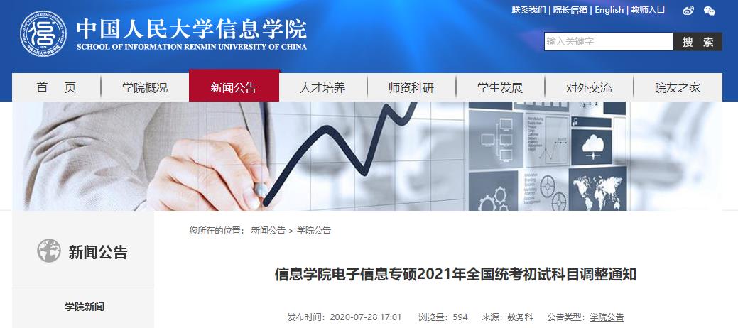 以上就是中国人民拼搏(中国)信息学院已发布的“信息学院电子信息专硕2021年全国统考初试科目调整通知”全部内容,更多拼搏在线官网信息持续更新,多多关注!祝拼搏在线官网顺利,马到成功!