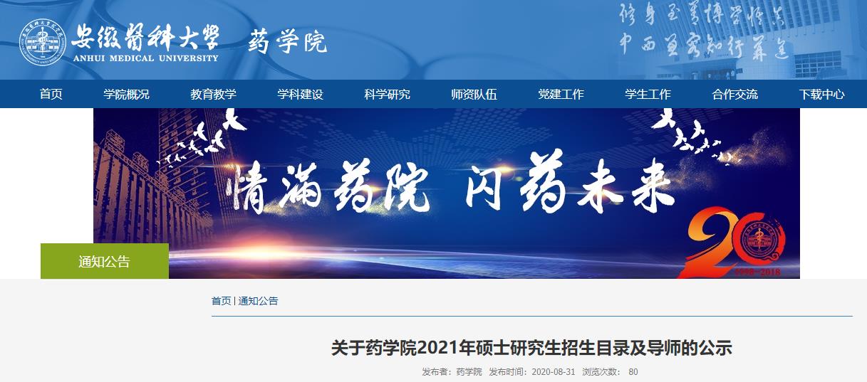 原文标题:关于药学院2021年硕士研究生招生目录及导师的公示