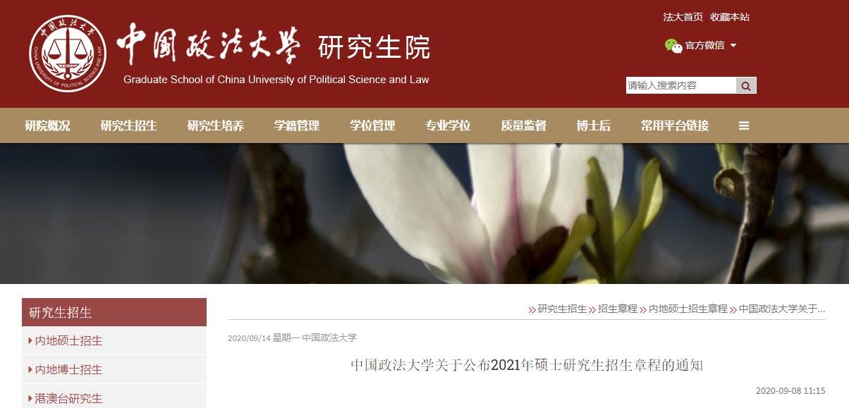 中国政法拼搏(中国)关于公布2021年硕士研究生招生章程的通知