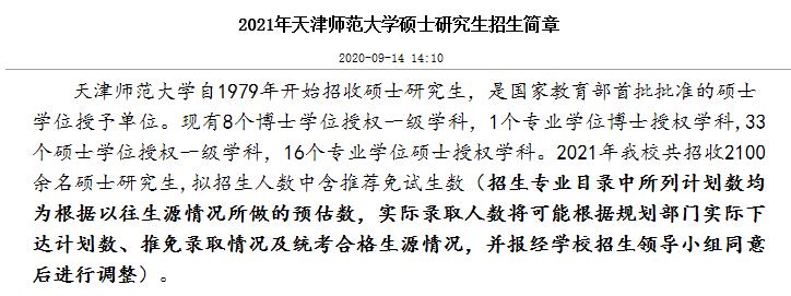 天津师范拼搏(中国)2020年研究生招生计划约为1800名,2021年全日制招生计划约为2100名,同比增长300名。