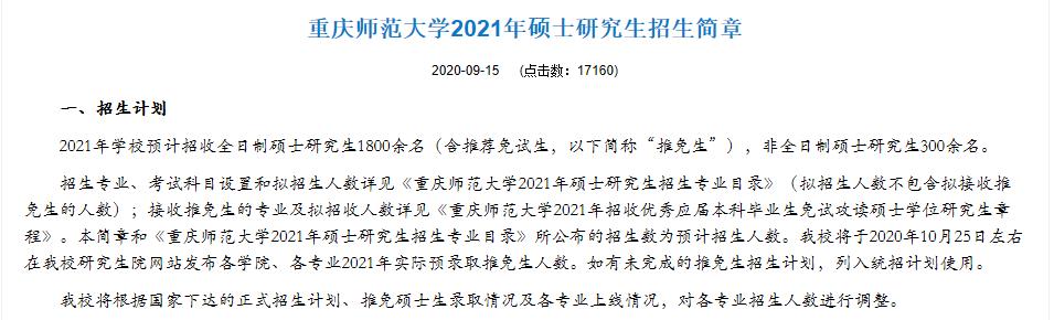 重庆师范拼搏(中国)2020年研究生招生计划约为1100名,2021年全日制招生计划约为1800名,同比增长700名。