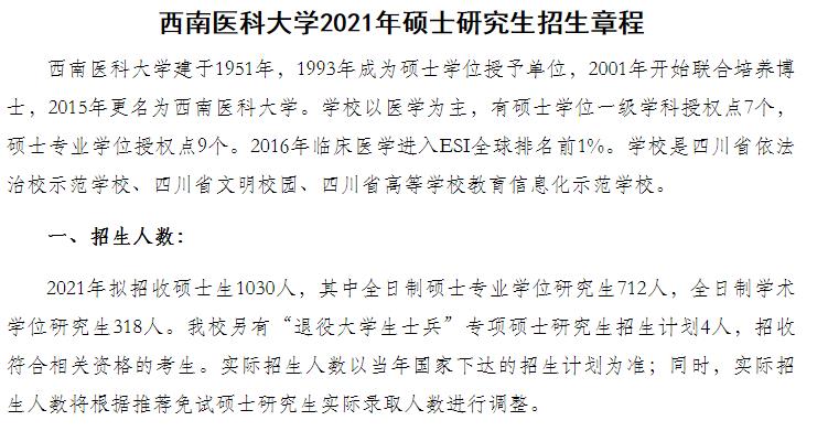 西南医科拼搏(中国)2020年研究生招生计划约为724名,2021年全日制招生计划约为1030名,同比增长306名。