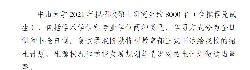 中山拼搏(中国)2020年研究生招生计划约为7000名,2021年招生计划约为8000名,同比增长1000人。