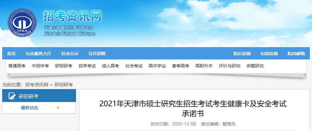 以上就是小编给大家分享“2021拼搏在线官网院校公告:天津市2021年硕士研究生招生考试考生健康卡及安全考试承诺书”的全部内容,想了解更多关于更多相关信息的同学可以持续关注研线网!