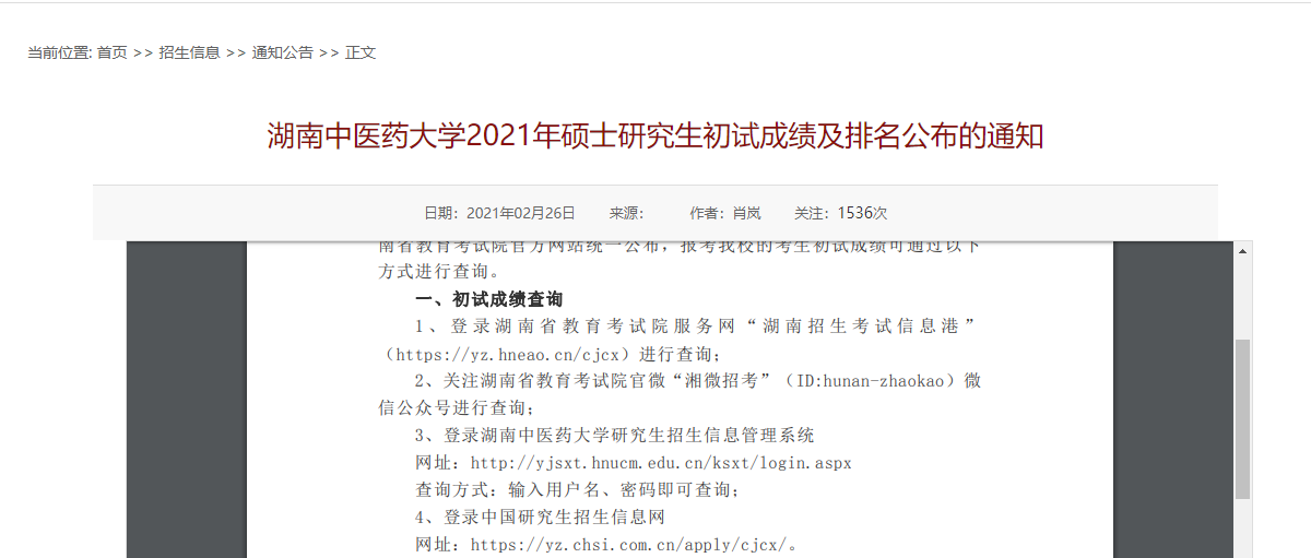 湖南中医药拼搏(中国)拼搏在线官网初试成绩查询入口:https://yjsy.hnucm.edu.cn/info/1092/3556.htm