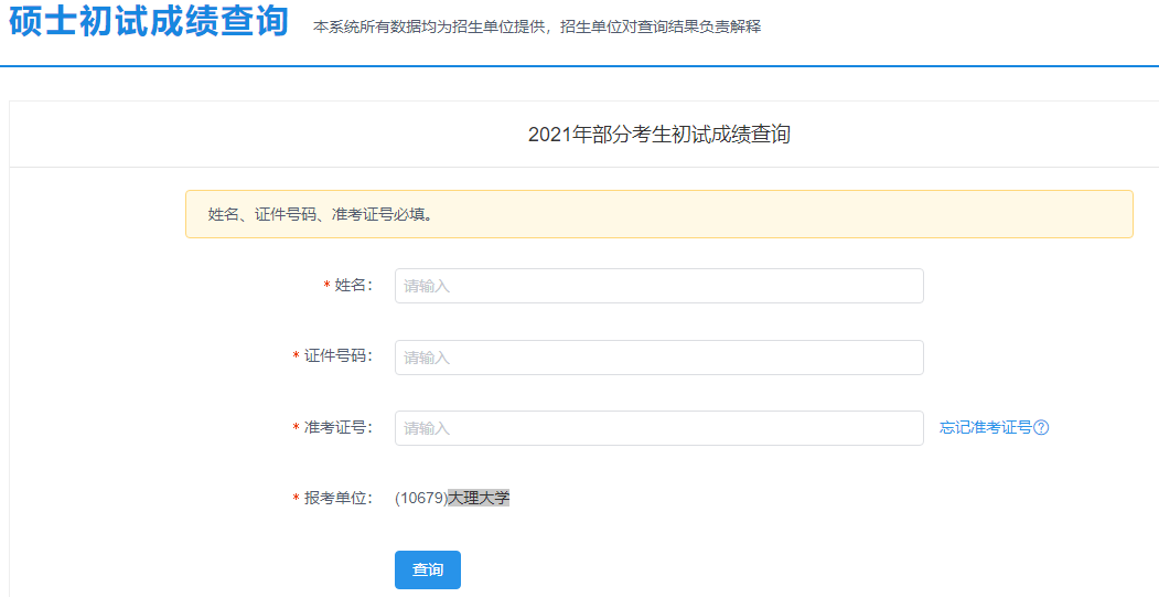 大理拼搏(中国)拼搏在线官网初试成绩查询入口:https://yz.chsi.com.cn/apply/cjcx/t/10679.dhtml
