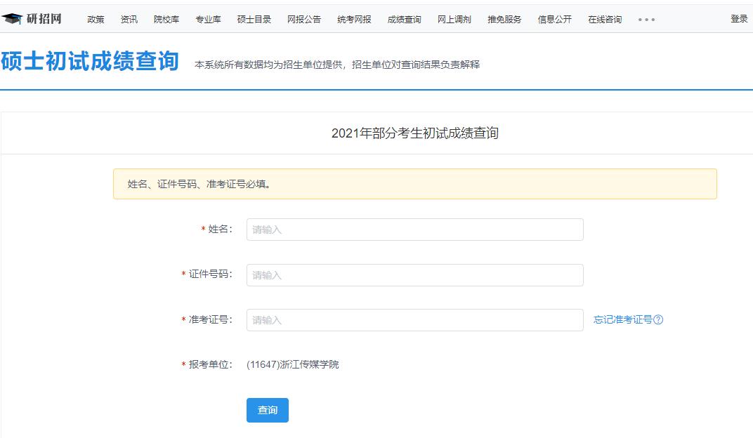 浙江传媒学院拼搏在线官网初试成绩查询入口:https://yz.chsi.com.cn/apply/cjcx/