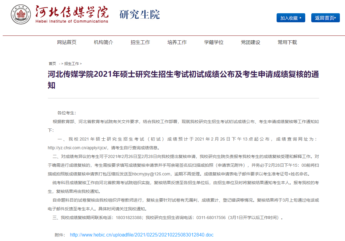 以上就是小编整理“2021拼搏在线官网初试成绩:河北传媒学院拼搏在线官网初试成绩查询入口开启!初试成绩已公布!”的全部内容,想了解更多相关信息请持续关注本网站。